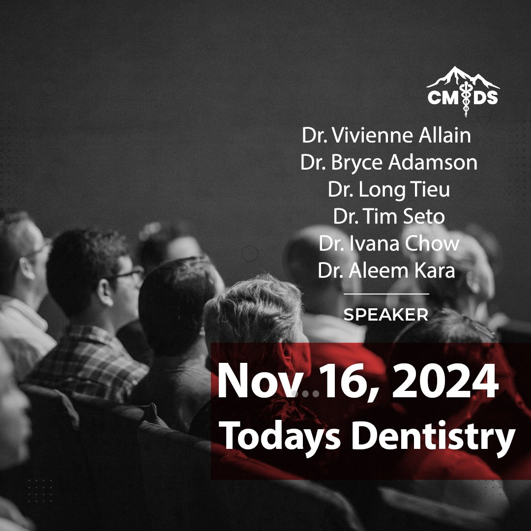 Presentation by Dr. Vivienne Allain (Periodontics), Dr. Bryce Adamson (Prosthodontics) and Dr. Long Tieu (Orthodontics), Dr. Tim Seto, Dr. Ivana Chow, Dr. Aleem Kara on topics that are relevant to Todays Dentistry